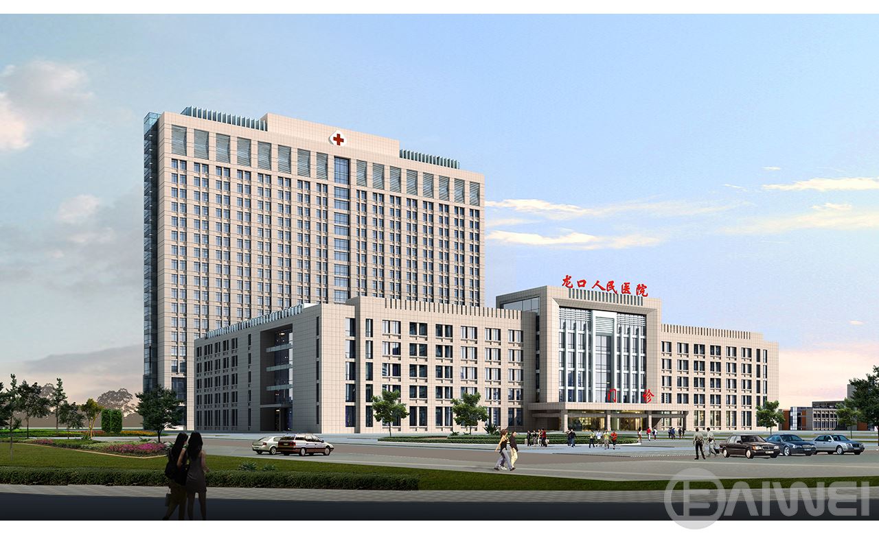 項目位于煙臺龍口市。一期工程為門診醫(yī)技樓和病房樓,建筑面積153478㎡;二期建設(shè)傳染病房、高壓氧艙、鍋爐房、能源中心、食堂宿舍等附屬用房,建筑面積9866m2。把“以病人為中心”作為首要原則,并把“以人為本”落實到實處,給患者創(chuàng)造一個輕松愉悅的就醫(yī)環(huán)境,以達到治病救人的目的。同時,充分考慮到醫(yī)護人員的工作環(huán)境,采取醫(yī)護走廊與就醫(yī)走廊分設(shè)的方法,體現(xiàn)出“以人為本”的設(shè)計理念,創(chuàng)造出人性化的醫(yī)院環(huán)境。