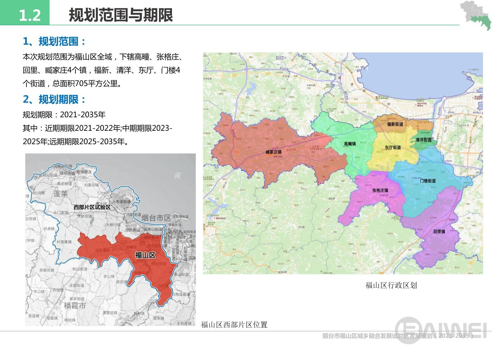 規(guī)劃范圍為福山區(qū)全域,下轄高疃、張格莊、回里、臧家莊4個鎮(zhèn),福新(含1個省級高新技術(shù)產(chǎn)業(yè)園區(qū))、清洋、東廳、門樓4個街道,總面積約705平方公里。