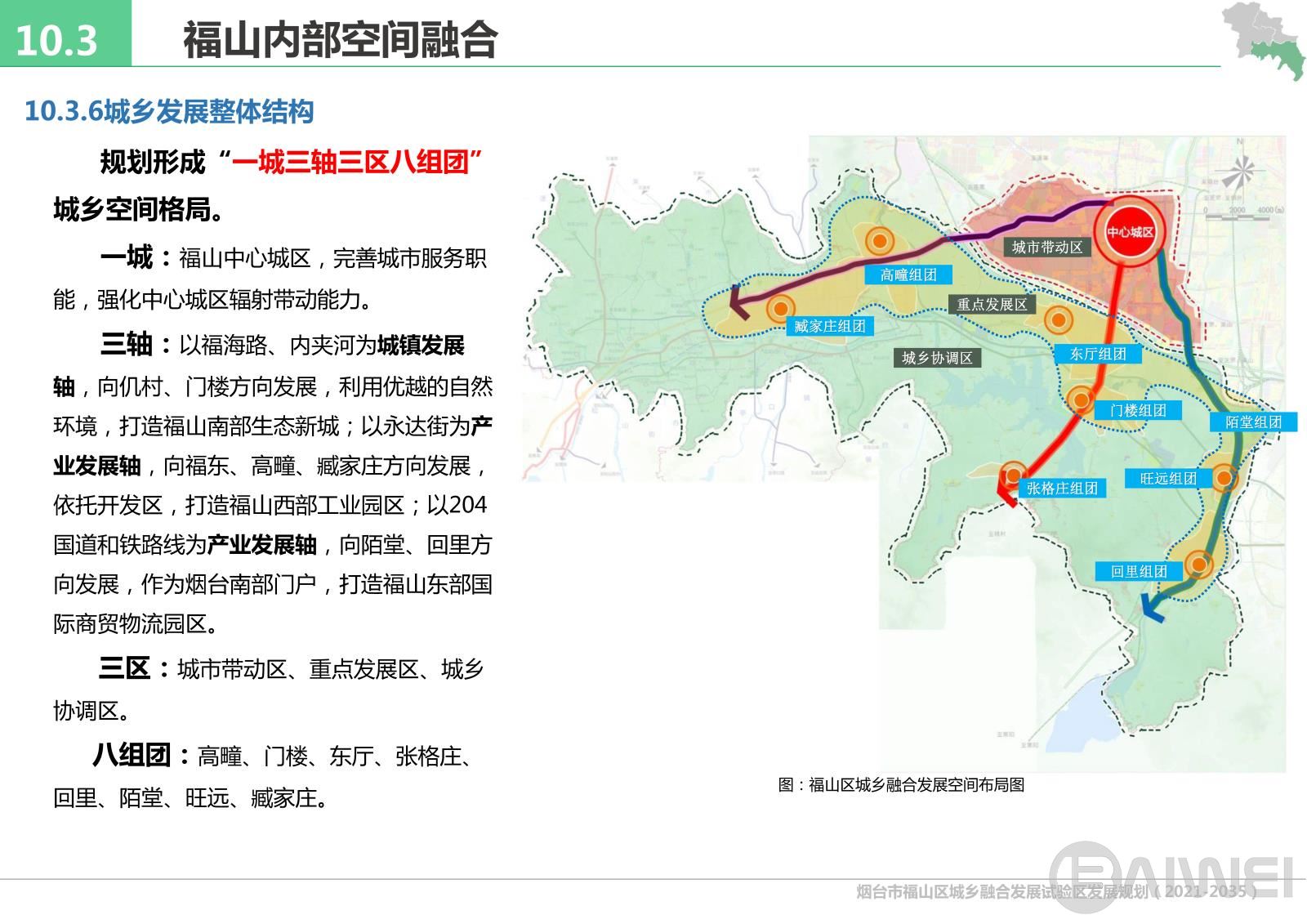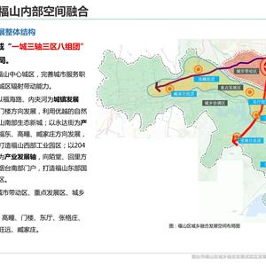 規(guī)劃從綠色發(fā)展一體化,基礎(chǔ)設(shè)施一體化、公共服務(wù)均等化、產(chǎn)業(yè)協(xié)同一體化、空間布局一體化和體制機制一體化六大板塊出發(fā),對福山區(qū)與周邊區(qū)域,福山區(qū)內(nèi)部之間的相互融合進(jìn)行深入研究。實現(xiàn)福山走在前列、做好示范,打造生產(chǎn)、生活、生態(tài)和諧一體的新型城鄉(xiāng)融合形態(tài),創(chuàng)建“城鄉(xiāng)共同締造、創(chuàng)新融合的山東省城鄉(xiāng)融合發(fā)展示范區(qū)。”