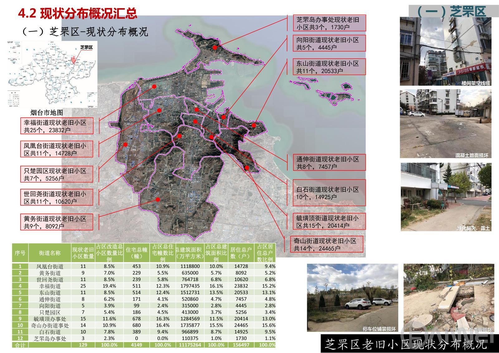煙臺市的老舊小區(qū)改造工程雖然在不斷向前推進,老舊小區(qū)改造對于城市存量住區(qū)空間的發(fā)展以及煙臺市的城市發(fā)展有重要意義。本次老舊小區(qū)改造計劃范圍指煙臺市城區(qū)或縣城國有土地上2005 年12 月31 日前建成,失養(yǎng)失修失管嚴重、市政配套設(shè)施不完善、公共服務(wù)和社會服務(wù)設(shè)施不健全、居民改造意愿強烈的住宅小區(qū)。擬對居民進行征收補償安置,或者擬以拆除新建(含改建、擴建、翻建)方式實施改造的住宅不得納入老舊小區(qū)改造范圍。改造計劃期限為2020-2024年。